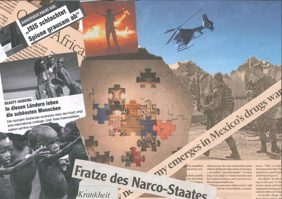 Fragmente klischeehafter Weltbilder in der Auslandsberichterstattung. Montage: Maria J. Birkmeir