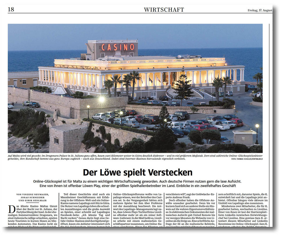 Vor zwei Jahren haben wir sie an der Universität Eichstätt im Praxisteil unterrichtet, im Januar waren sie mit dabei bei unserem Workshop in Tutzing: Jetzt haben Vinzenz Neumaier, Jonas Schneider und Eirik Sedlmair in der Süddeutschen Zeitung eine von uns betreute Recherche über fragwürdige Verbindungen beim Online-Glückspiel veröffentlicht. Die Idee dazu kam Vinzenz nach einem Besuch in Las Vegas während des Auslandssemesters; die gemeinsame Recherche dauerte vier Monate – zwei Tage recherchierten sie vor Ort auf Malta. Geduldig versuchten sie Insider und Ehemalige zum Sprechen zu bringen – nach mehrmaligen Versuchen mit Erfolg. „Das Schwierigste war, alle kleinen Indizien zu einer großen Geschichte zu formen,“ sagt Vinzenz; und den Verdacht so zu belegen, dass die Redaktion der SZ sowie die Juristen des Verlags der Veröffentlichung zustimmten.